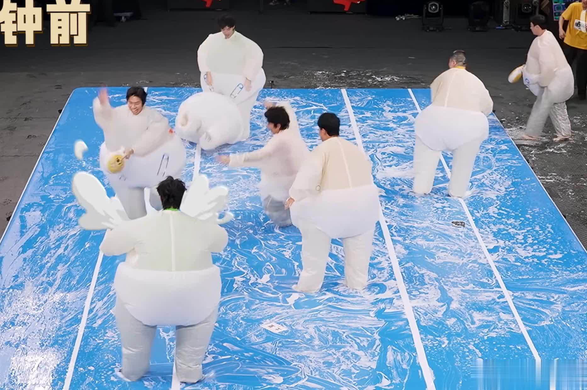 第二轮的第一个游戏是“打喜你”,十人部落派出了最能“打”的松天硕。
