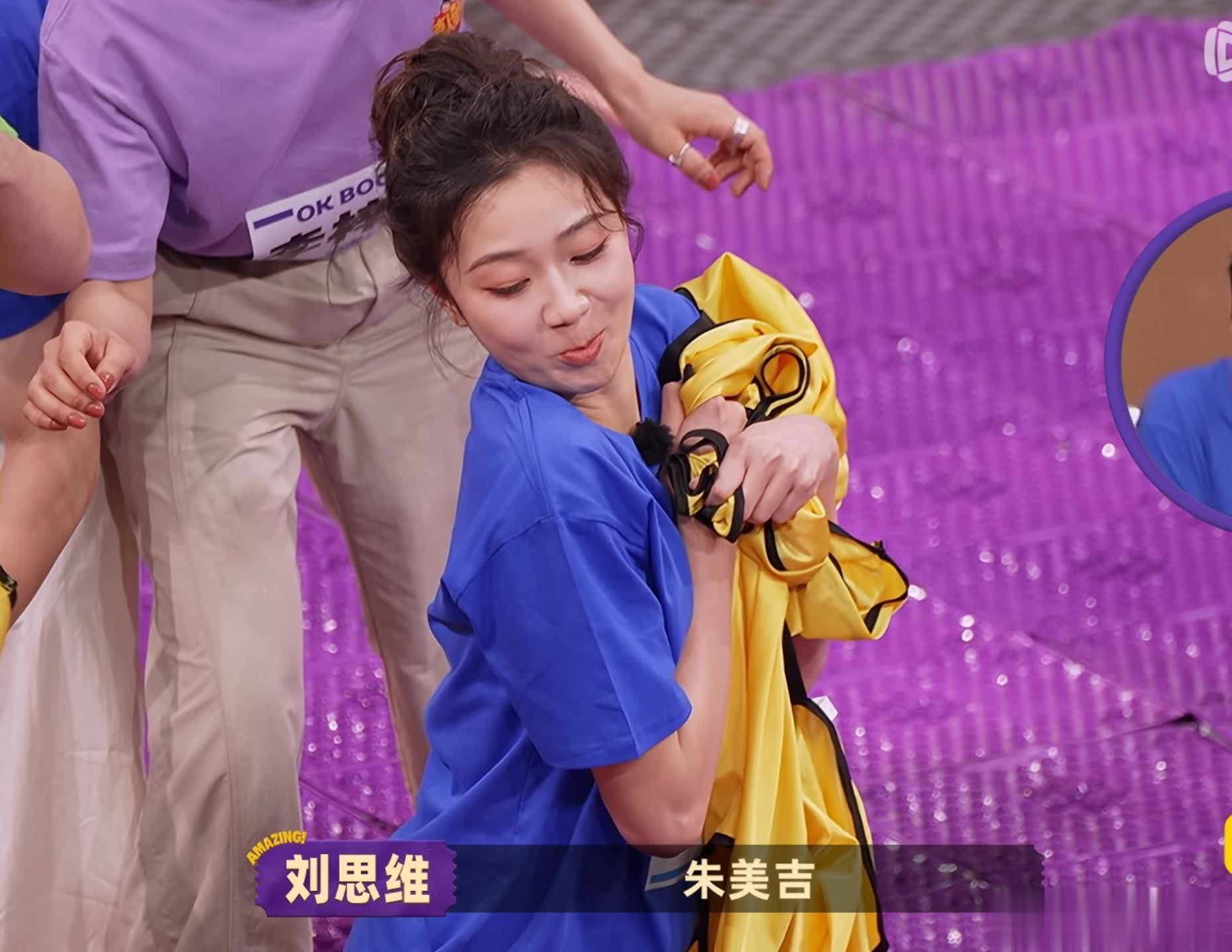 不知道为啥,在这个环节,朱美吉总能定格在奇葩的动作上。
